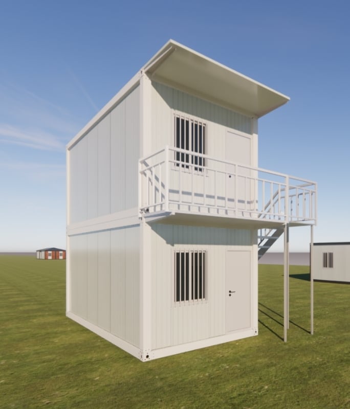 [新品・予約商品] W3000×D6000mmを上下連結 (サイズ・カラー変更可能)外階段・庇付き 現場組立式プレハブハウス ユニットハウス