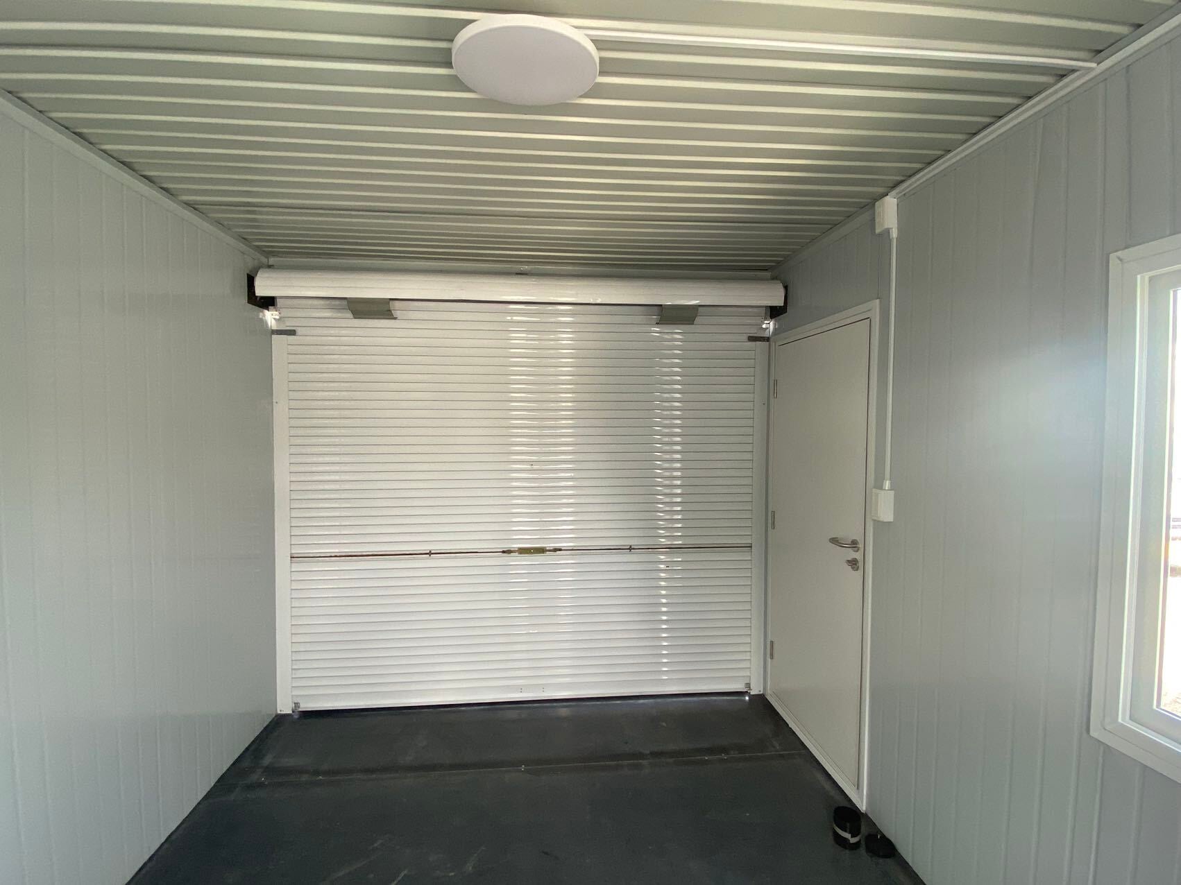[新品・予約商品] W3000×D4000mm (サイズ・カラー変更可能)シャッター付き倉庫タイプ 現場組立式プレハブハウス ユニットハウス