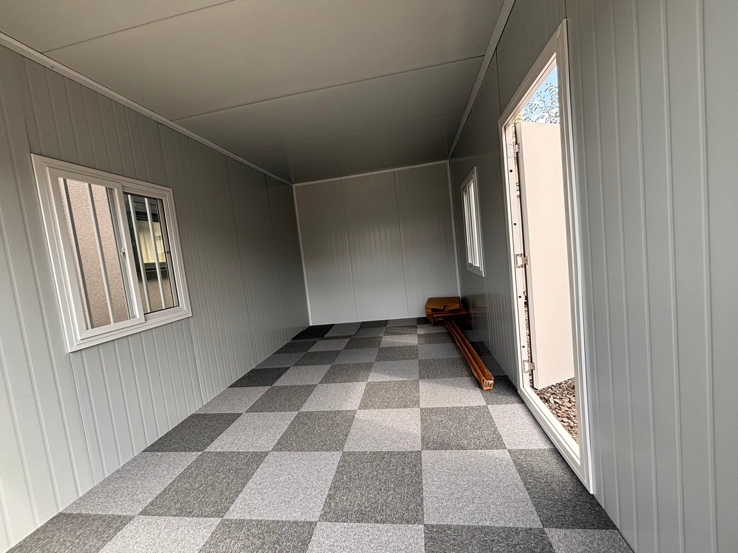 [新品・予約商品] W3000×D6000mm (サイズ・カラー変更可能)シャッター付き 現場組立式プレハブハウス ユニットハウス